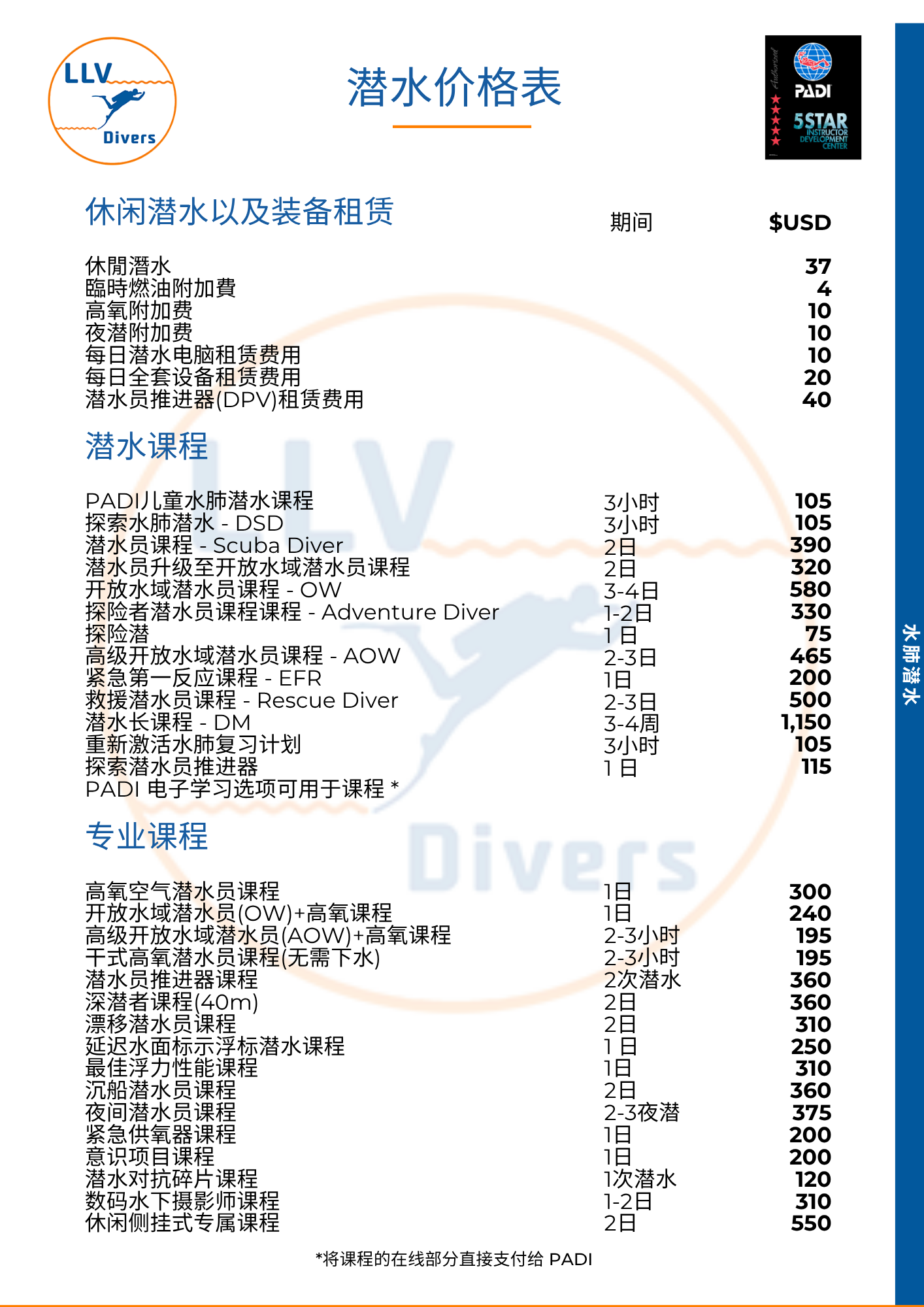 Refer to our dive price lists for specific details – English and 中文 The PDF brochure can be downloaded below.